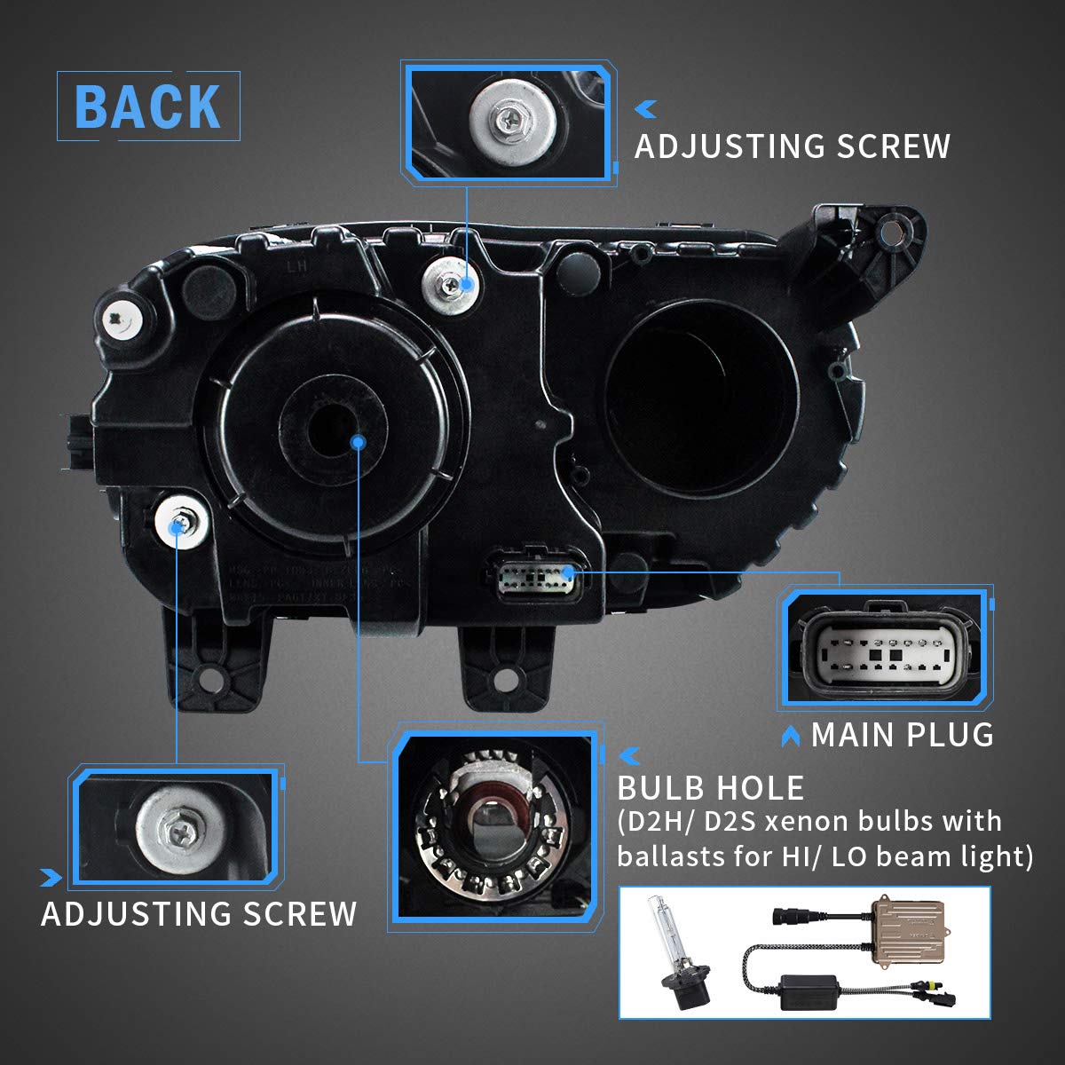 VLAND Led Headlight Compatible with Dodge Challenger 2015-2019 w/Dual Beam Lens Projector w/White DRL D2S/ D2H Bulbs (Not Included) for High& Low Beam, Driver/Left