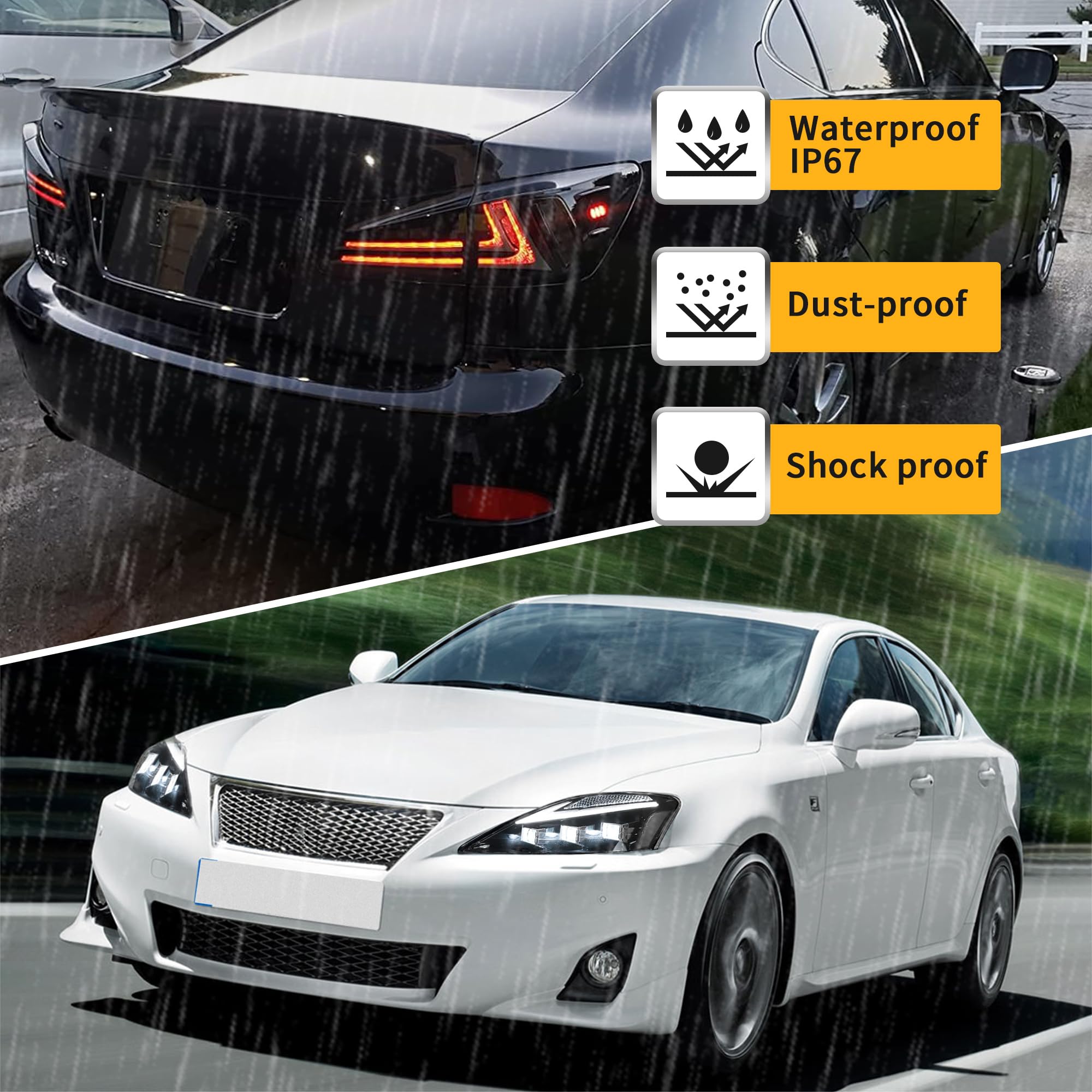 VLAND Led Headlights and Tail Lights Compatible with Lexus IS250 IS350 IS220d 2006-2012(NOT Fit IS250C/ IS350C) Clear Headlamps+ Red Rear Lamp Assembly—