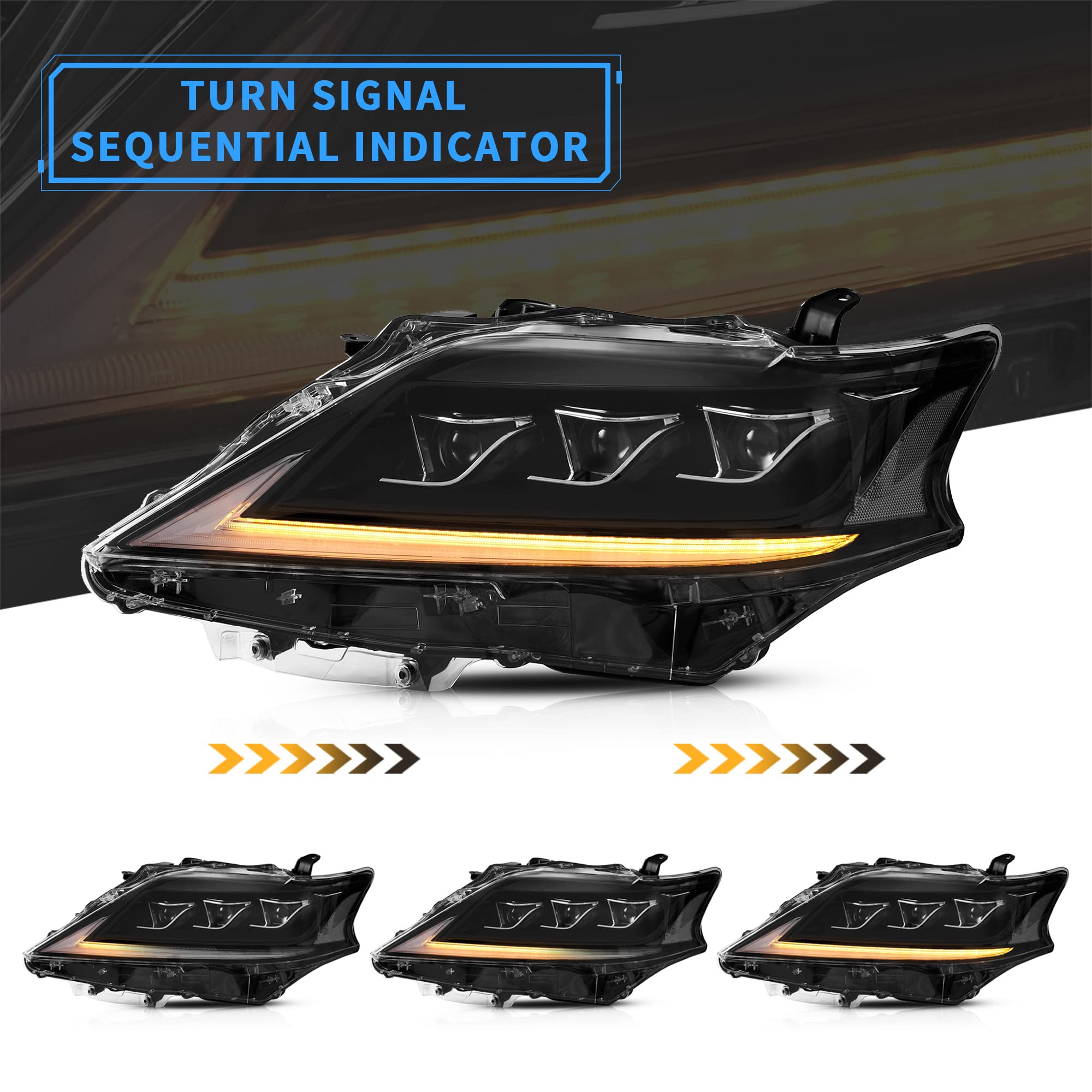 VLAND Led Headlights Compatible with Lexus RX270/ RX300 2013-2015, RX350 2014-2015 Third Generation (AL10) w/Clear Reflector w/Sequential w/Blue Breathing Lighting