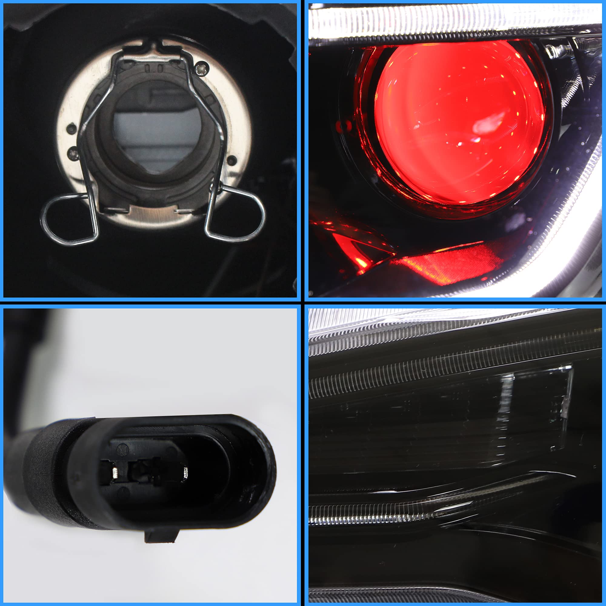 - 💡 Amber Sequential &Demon Eyes- The lights have a row of amber LED which can set up to run as switchback signal lighting, it is designed to fully upgrade your car. If you don’t like the demon eyes, please just unplug the wire harness of demon eyes according to listing page.