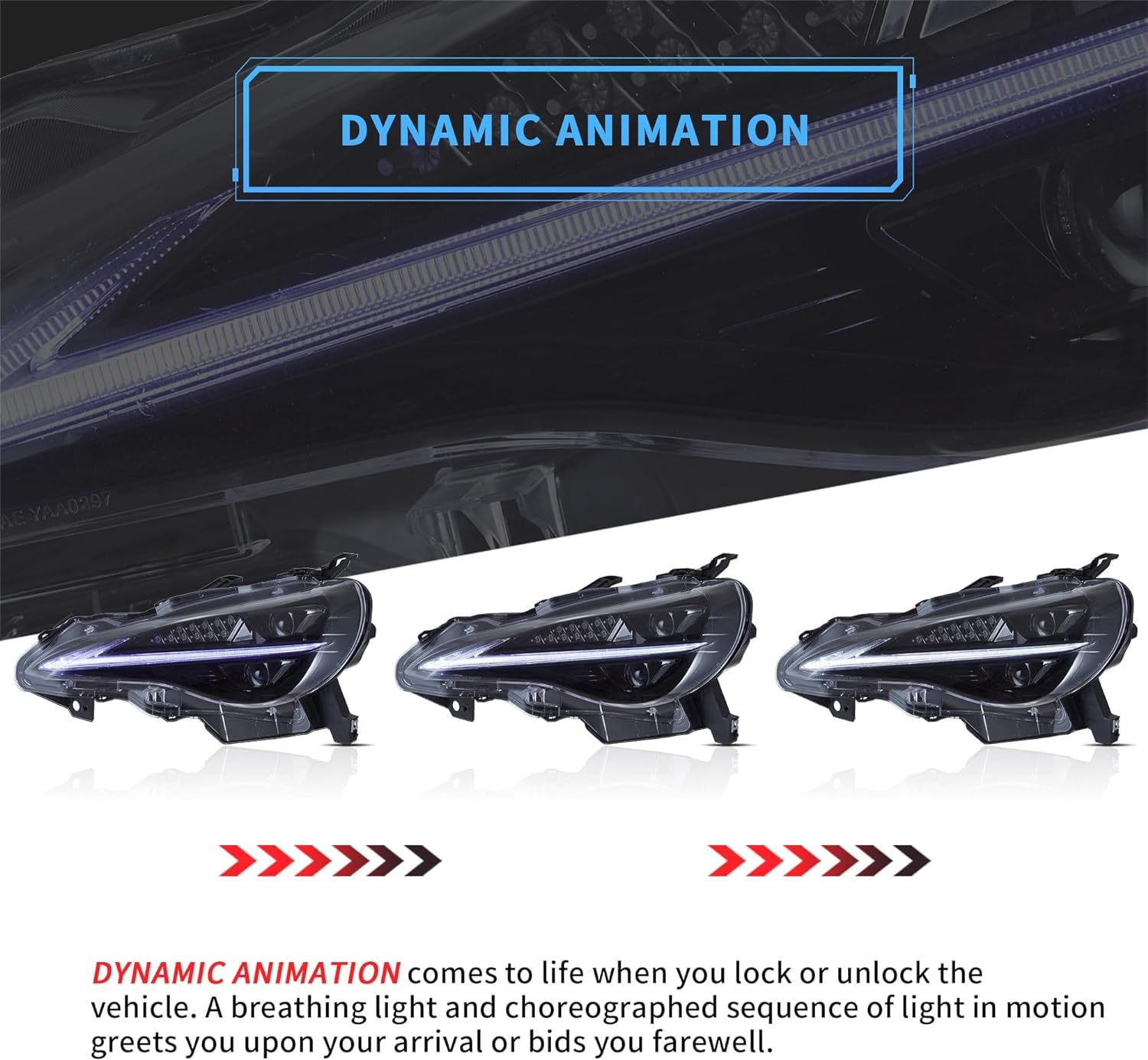 VLAND Projector Headlights Compatible with 1st Gen Toyota 86 2012-2020, S-ubaru Brz 2013-2019 Scion FR-S 2013-2016, Front Lamp Assembly w/Dynamic Animation w/Sequential, Plug and Play 2PCS