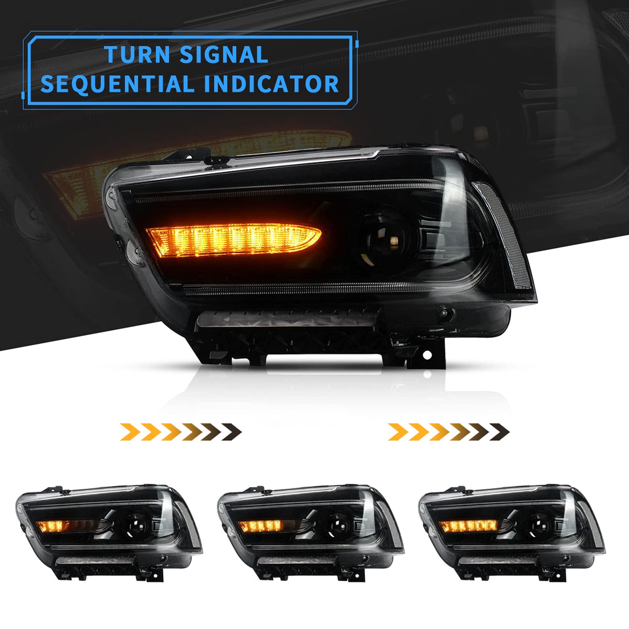 VLAND Projector Headlights + D2S Led Bulbs Compatible with Dodge Charger 2011-2014 (Not Fit 2012 Charger SE) w/Sequential Indicator Passenger+ Driver Sides+Bulbs