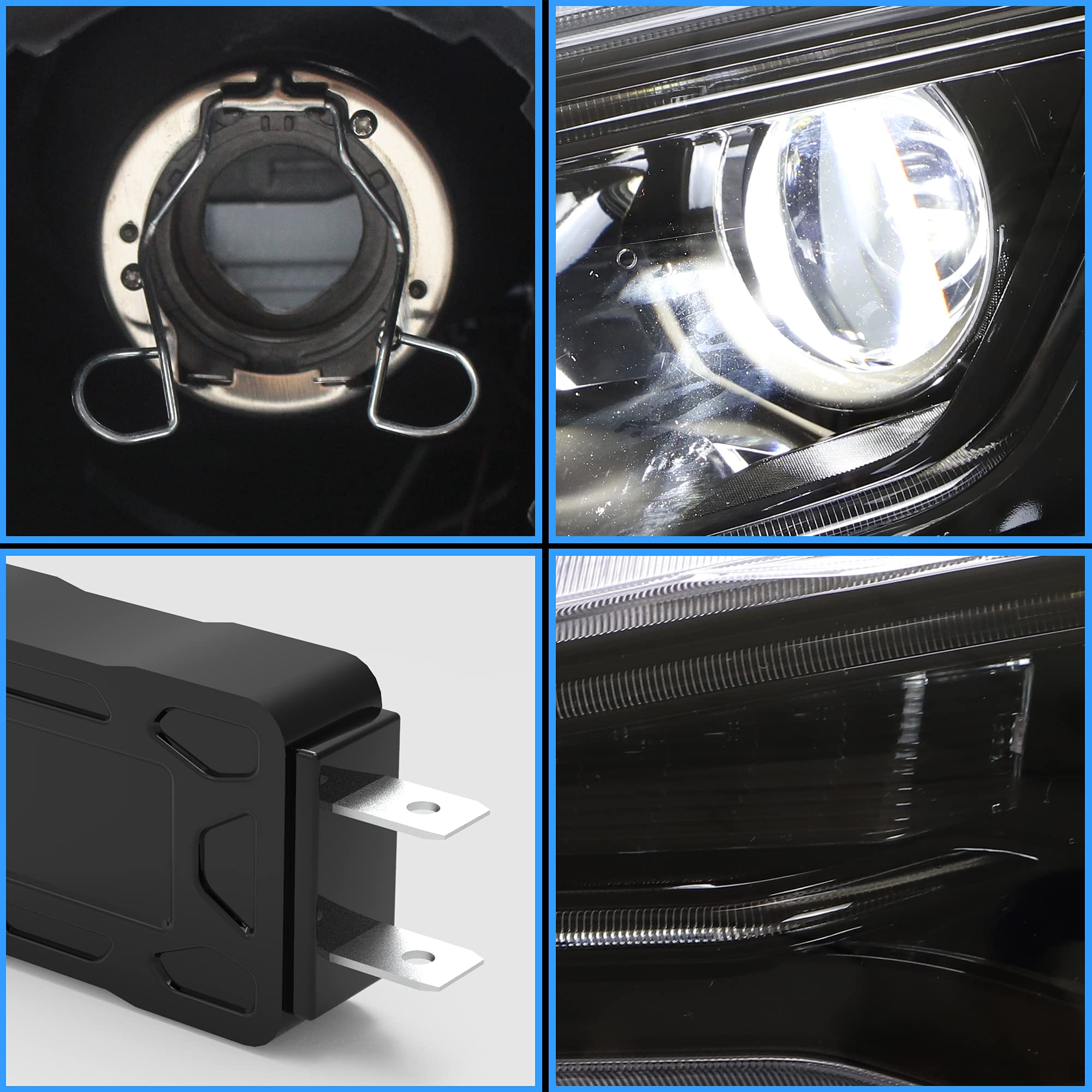 - 💡 Amber Sequential &Demon Eyes- The lights have a row of amber LED which can set up to run as switchback signal lighting, it is designed to fully upgrade your car. If you don’t like the demon eyes, please just unplug the wire harness of demon eyes according to listing page.