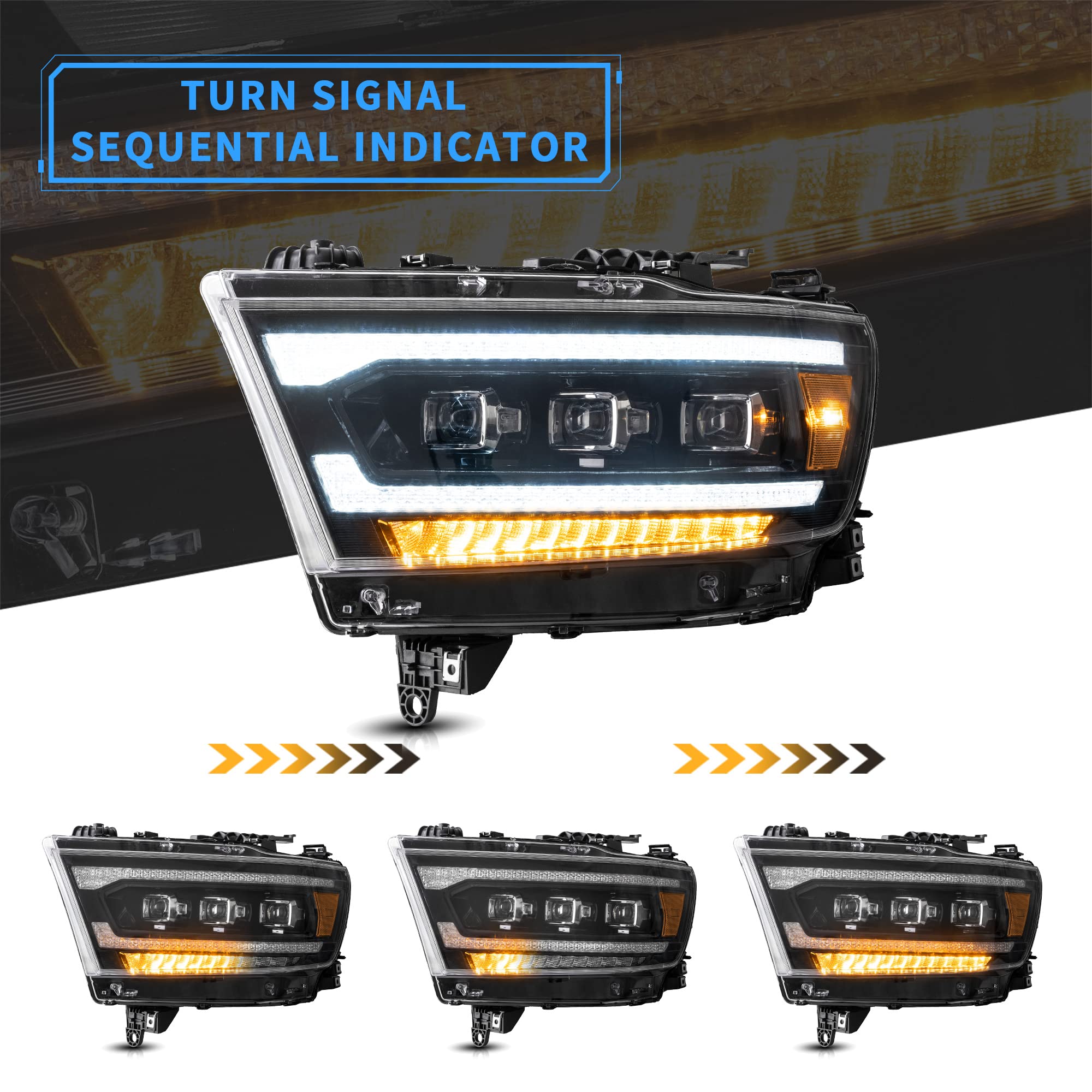 VLAND Projector Led Headlights Compatible with 2019-2024 Dodge Ram 1500 Tradesman, Bighorn, Laramie, Rebel, Lone Star w/Switchback Turn Signal w/Amber Reflector