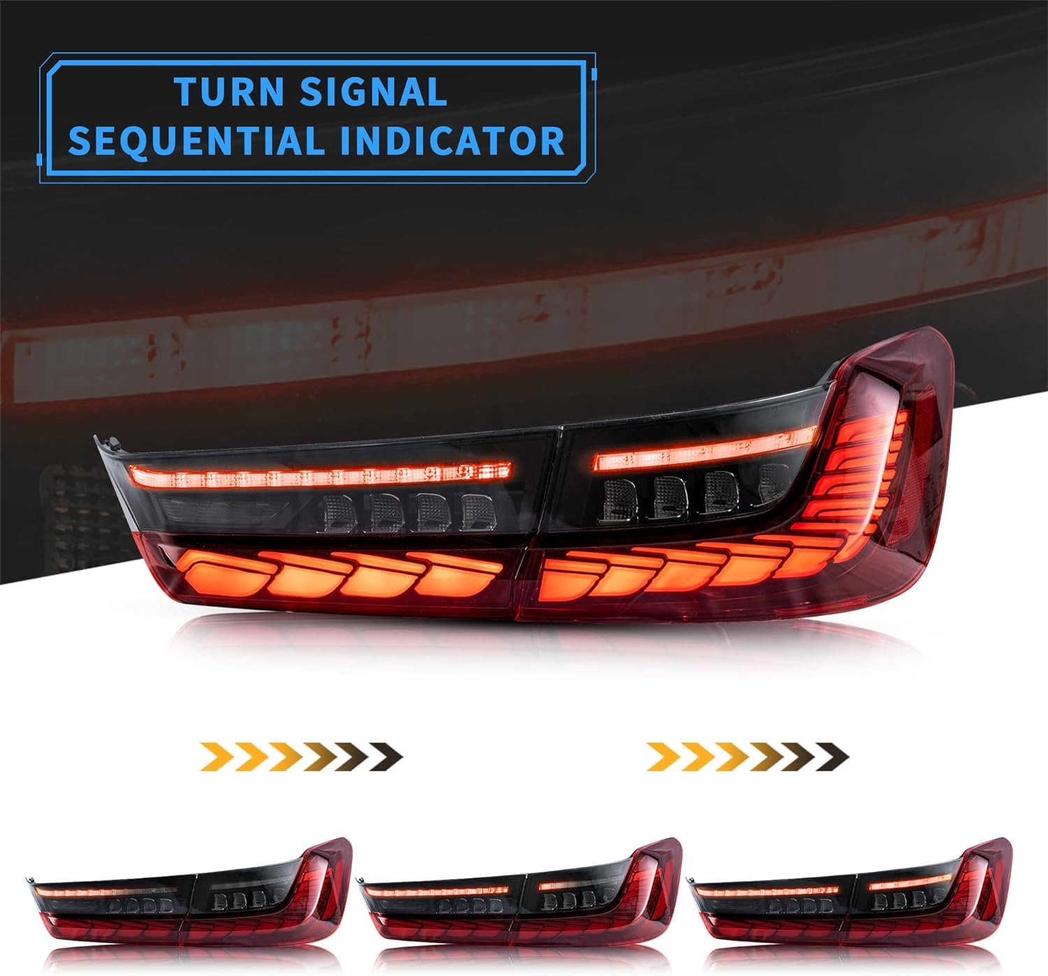 - 💡 Dynamic Animation DRL& Sequential Turn Signal Lighting Display - No bulbs needed. The lights have a row of red LED run as switchback when you apply the turn signal. Dynamic animation comes to life when you turn on the taillights. A choreographed sequence of light and red breathing light in motion greets you upon your arrival or bids you farewell.