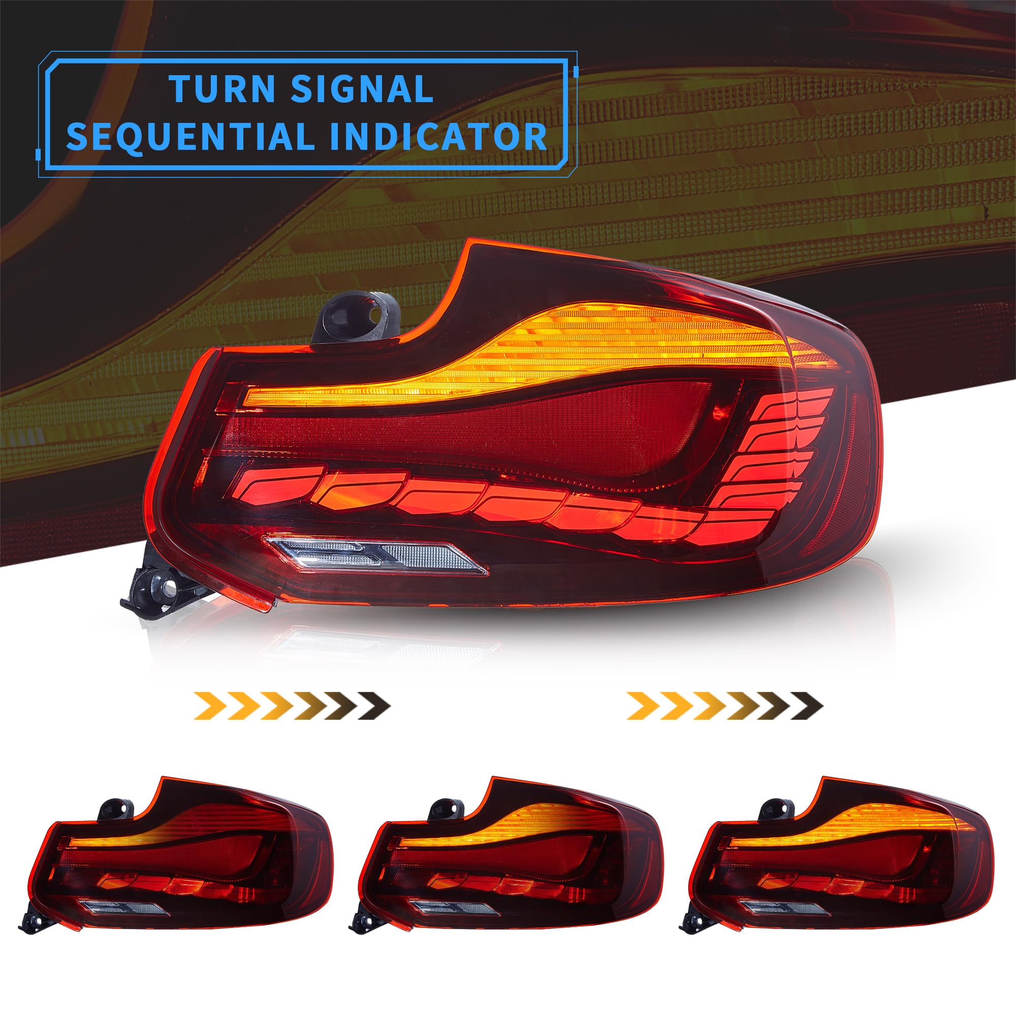 VLAND Tail Lights Compatible with BMW 2 Series F22 F23 M2 F87 2014-2021 Factory Halogen/LED First Generation, Rear Lights Assembly w/Dynamic Animation w/Amber Sequential, Red Dragon Scales Styles