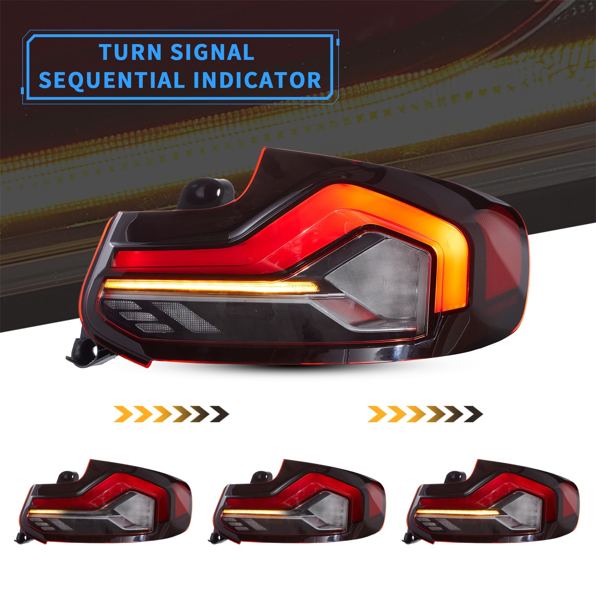 - 💡 Dynamic Animation DRL& Sequential Turn Signal Lighting Display - No bulbs needed. The lights have a row of amber LED run as switchback when you apply the turn signal. Dynamic animation comes to life when you turn on the taillights. A choreographed sequence of light and red breathing light in motion greets you upon your arrival or bids you farewell.